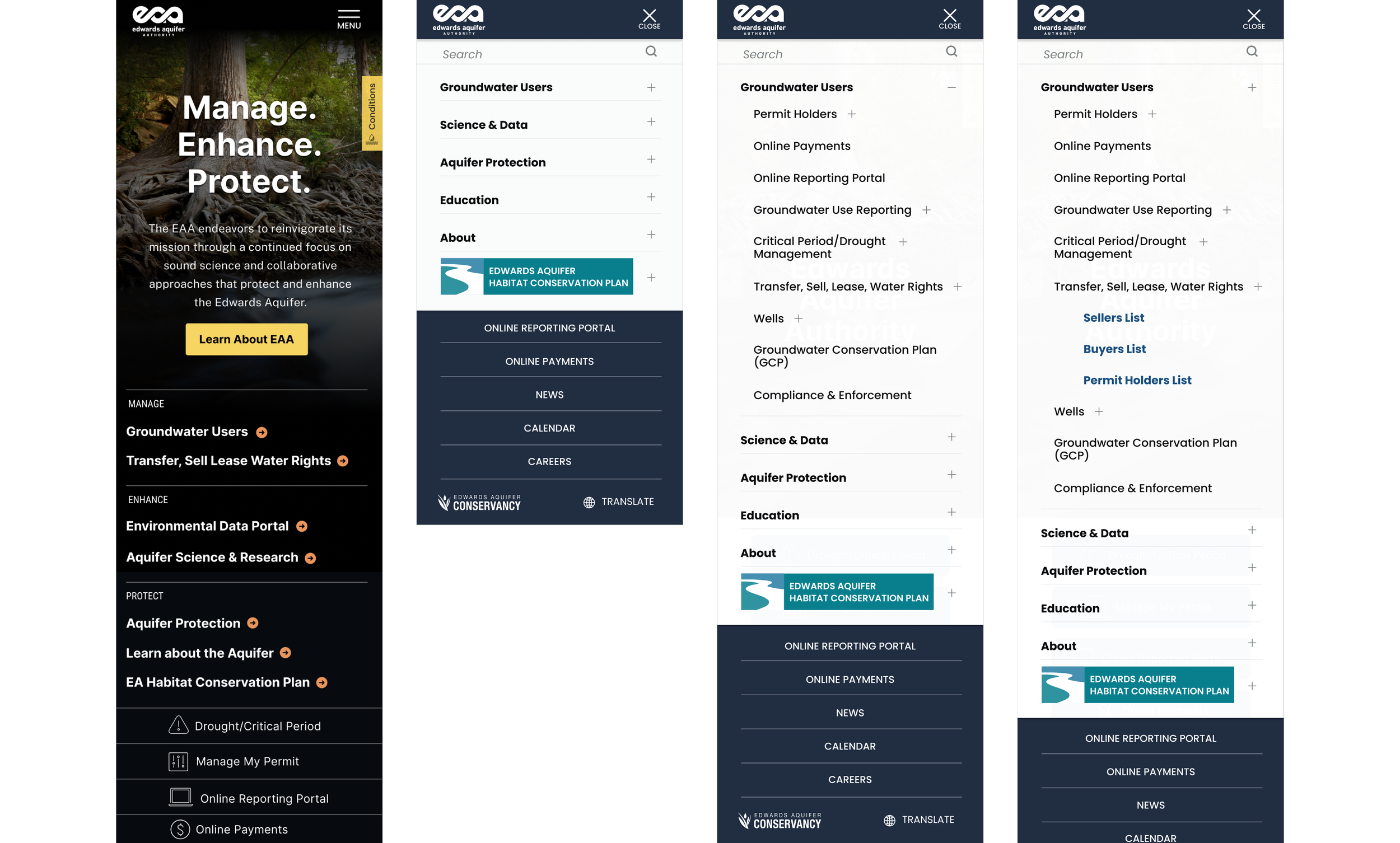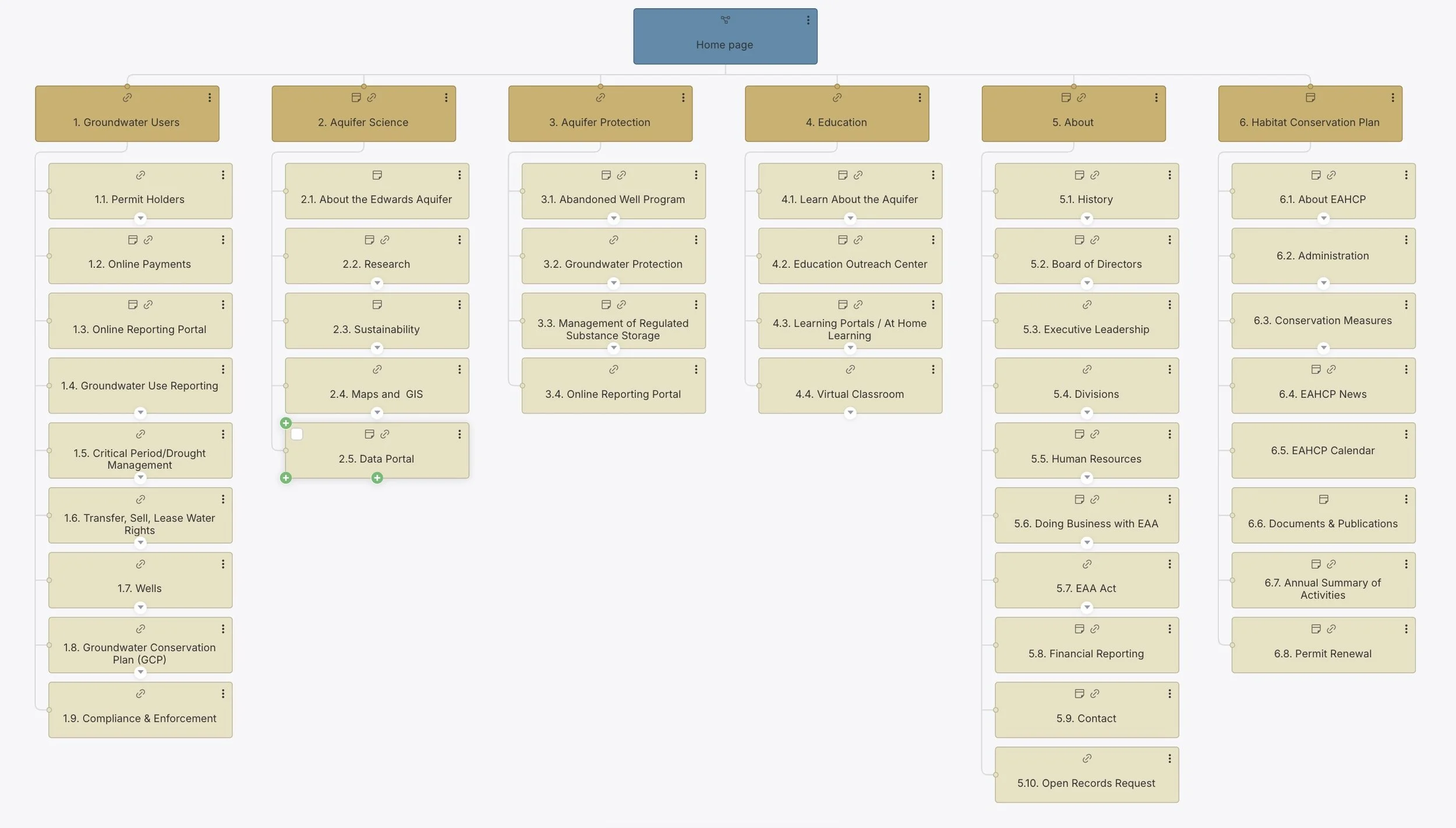 The Edwards Aquifer Authority (EAA) is a regional water management agency that regulates aquifer use in central Texas. The agency needed to redesign its public website and create an internal database dashboard. The project focused on integrating two external sites (conservation and education) into the main platform, organizing complex scientific content, and making technical water management information accessible to permit holders, educators, and the general public.