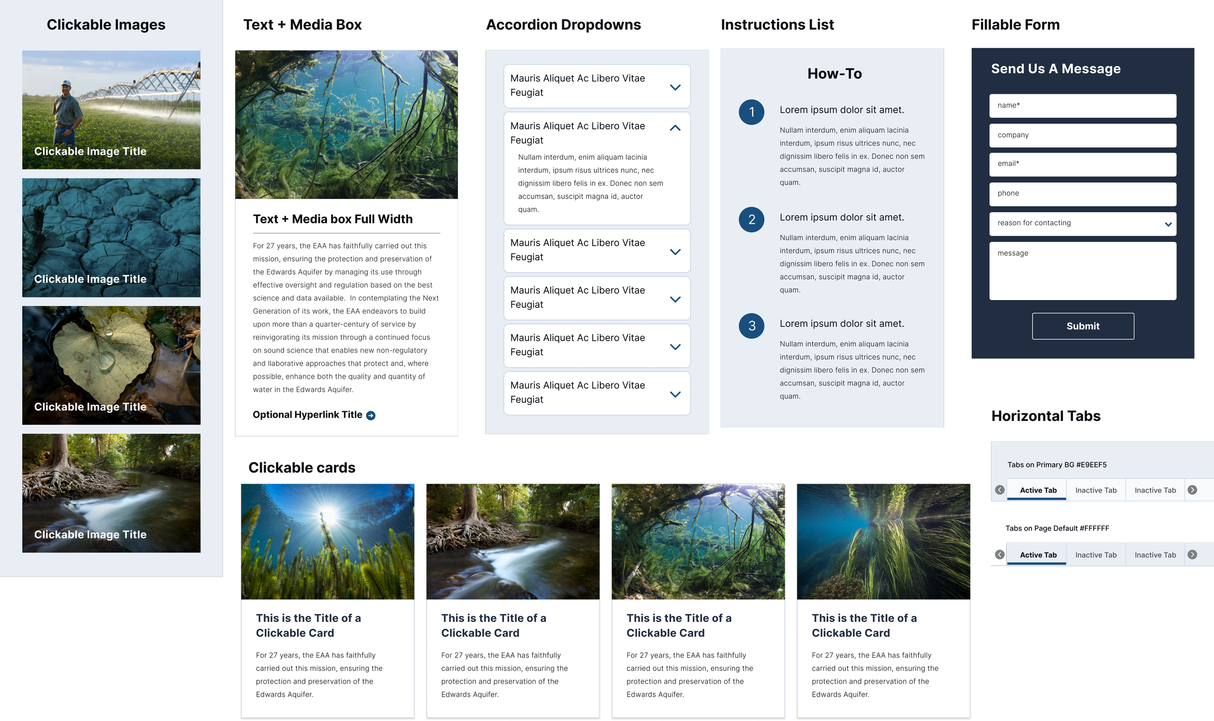 I designed 17 custom page templates to address EAA's specific content needs, ranging from news and events to specialized document directories, learning modules, and calculator pages for permit holders. Alongside these templates, I styled our standard library of page builder blocks—including accordions, cards, tables, and media components—to work consistently across the site. This modular approach allowed non-technical staff to build new pages by mixing and matching components while maintaining visual consistency and proper information hierarchy.