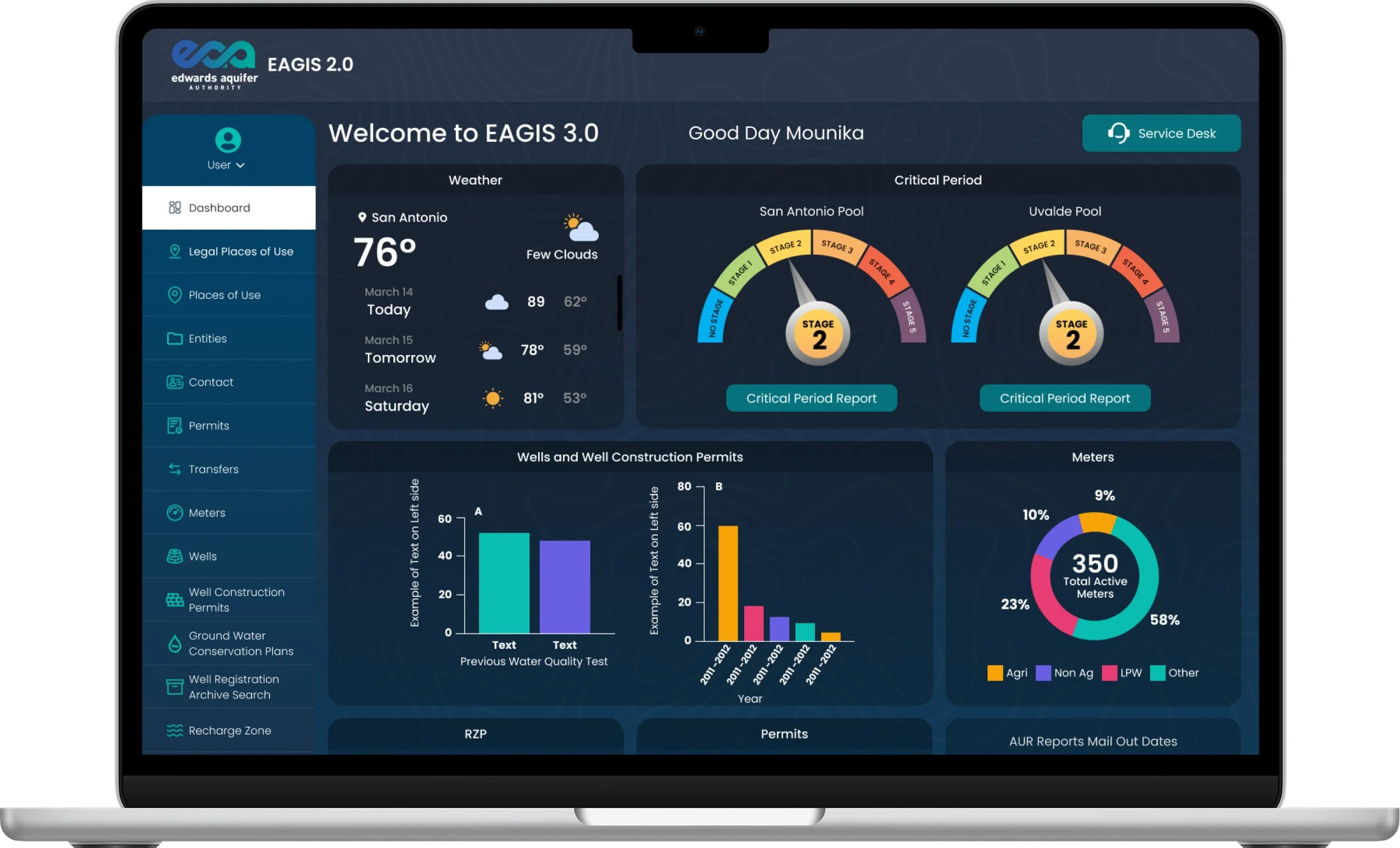 EAGIS Internal dashboard providing staff with real-time aquifer conditions and operational data